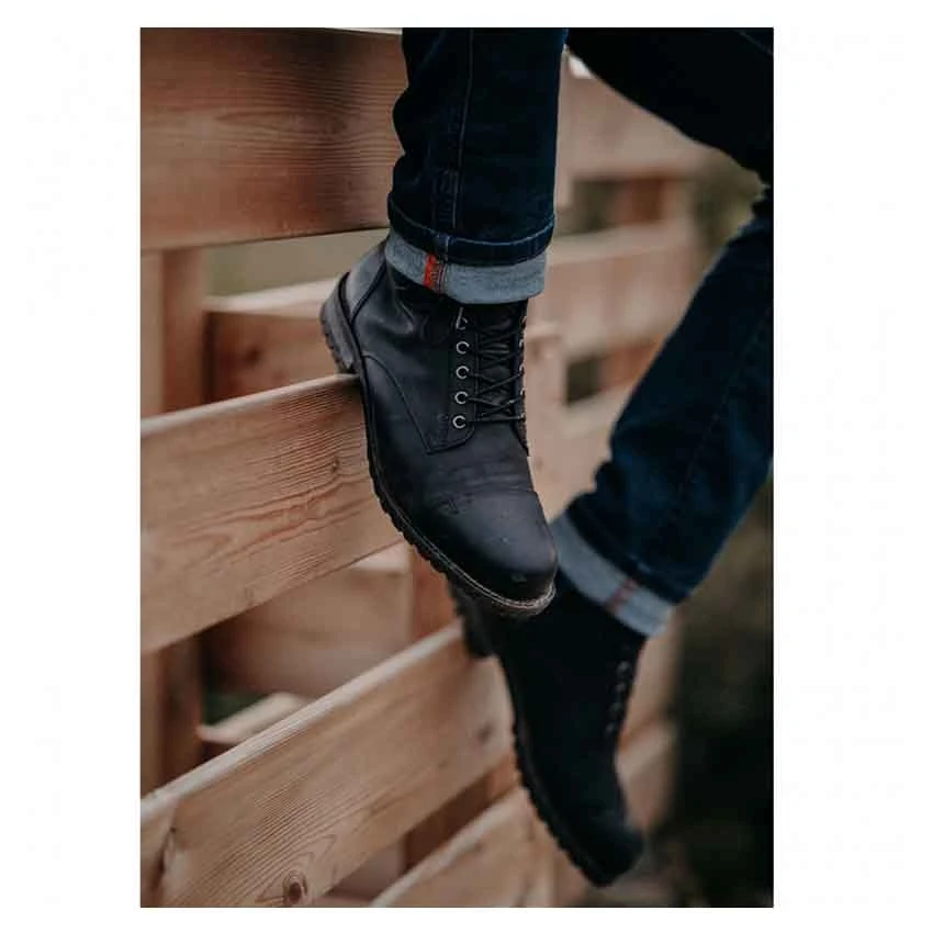 The Falco Gordon motorcycle boot offers a classic look with high comfort. Made of full-grain and oil-treated leather reinforced with ankle cup inserts and D3O® impact protection and shock absorption technology. Easy to put on and take off thanks to the lace and zipper combined closure. The added High-Tex membrane is Falco’s membrane that is resistant to water penetration.