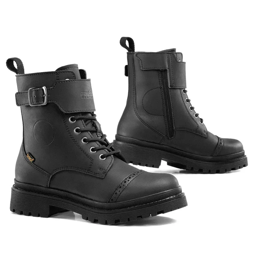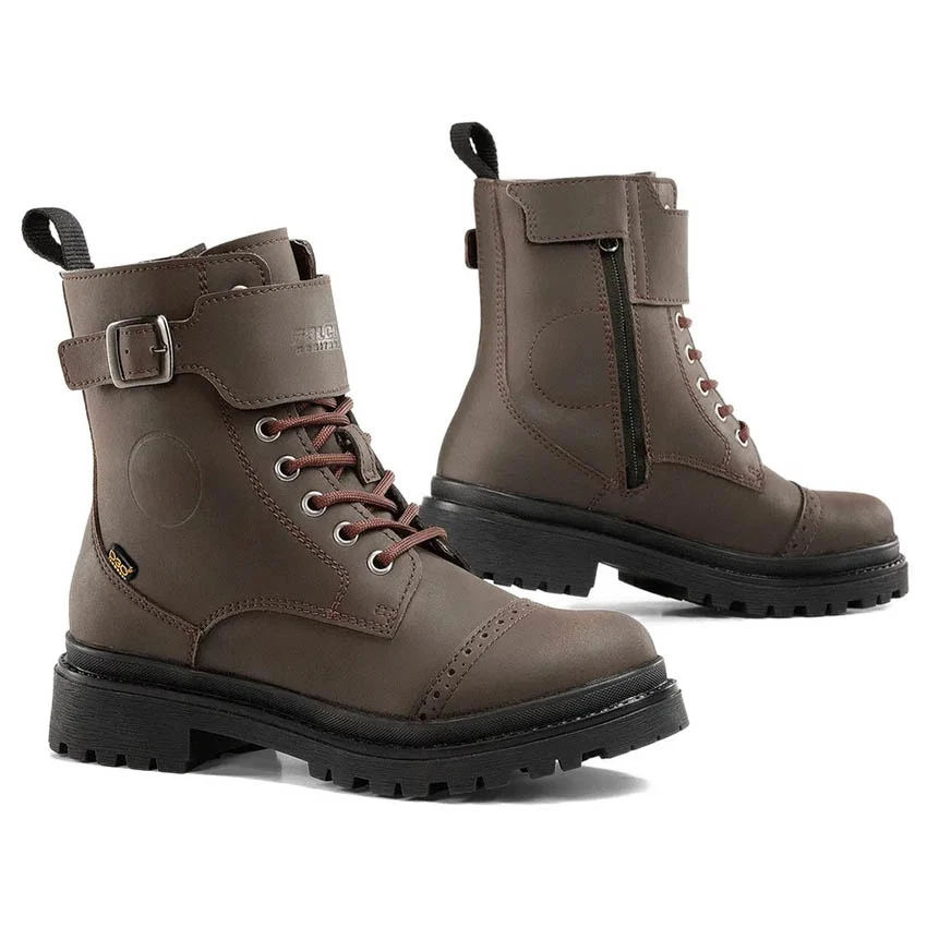 Urban women motorcycle shoes, the Royale lady from Falco is easy to match with any casual motorcycle outfit. Made of Micro-synth synthetic leather and rubber sole with good grip. Equipped with a high-tex waterproof* membrane to keep your feet dry during an unexpected rain shower. The Royale lady shoes have both a zip fastening and lacing.The overlap with buckle give the boots a rugged look and are easy to use thanks to the added Velcro.