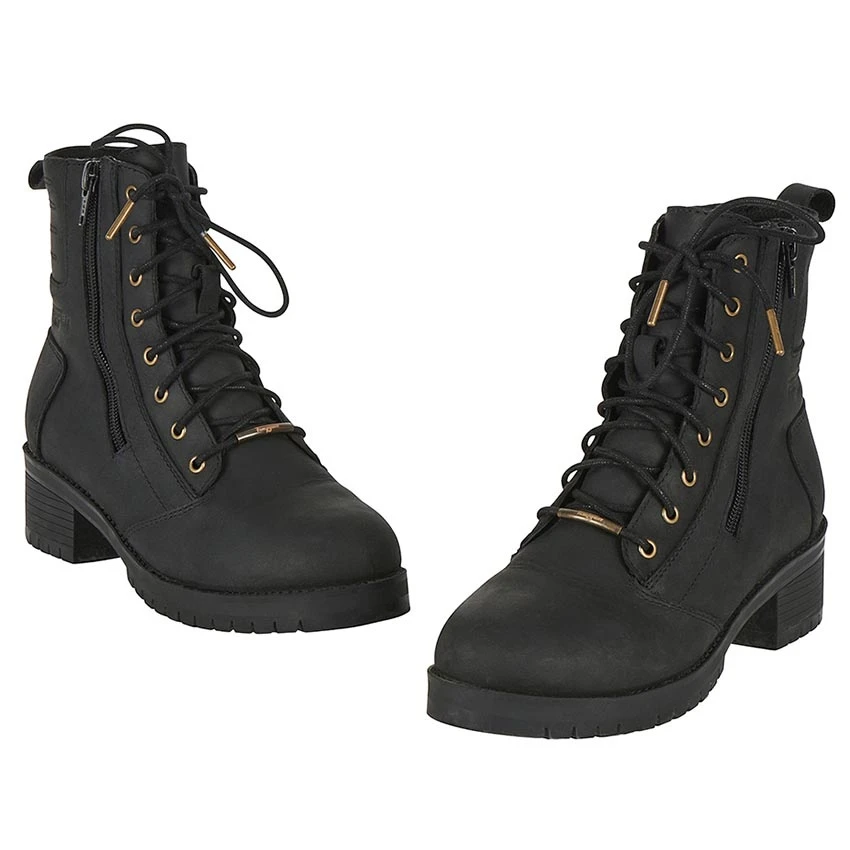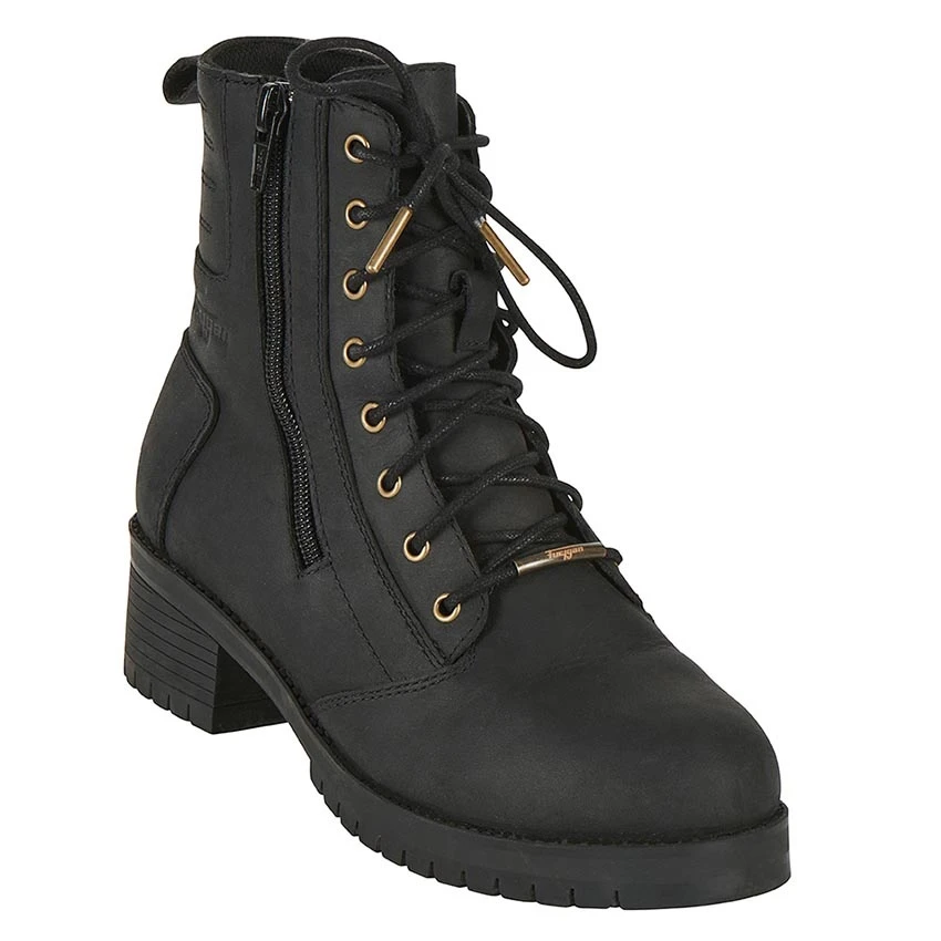 The Furygan Janis is a waterproof leather motorbike boot designed for both comfort on and off the bike. The the Janis motorbike shoe is practical, comfortable and protective. With D3O protection around the heel and reinforcements on the toes. Zipper on the side of the shoe to help put the boot on, and to maintain the lace-up setting.