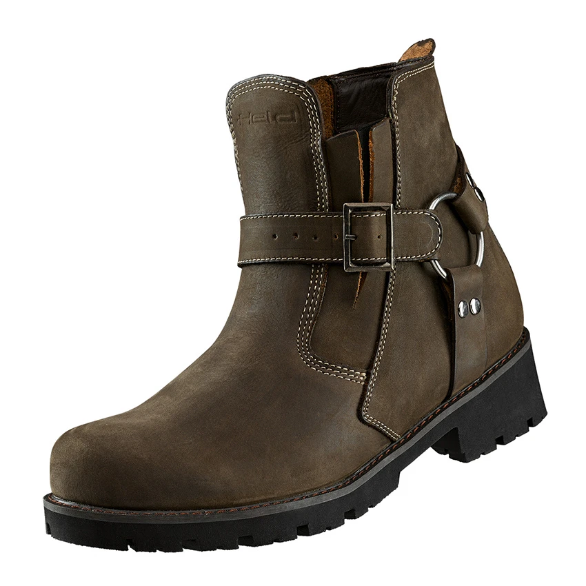 The Held Nashville is a short chopper boot that could also be used as a vintage motorcycle shoe. The advantage of the Nashville over a high chopper boot is that it can be put on quickly and runs comfortably. Furthermore, the motorcycle shoes have the same safety aspects as a reinforced ankle, sole and toes.