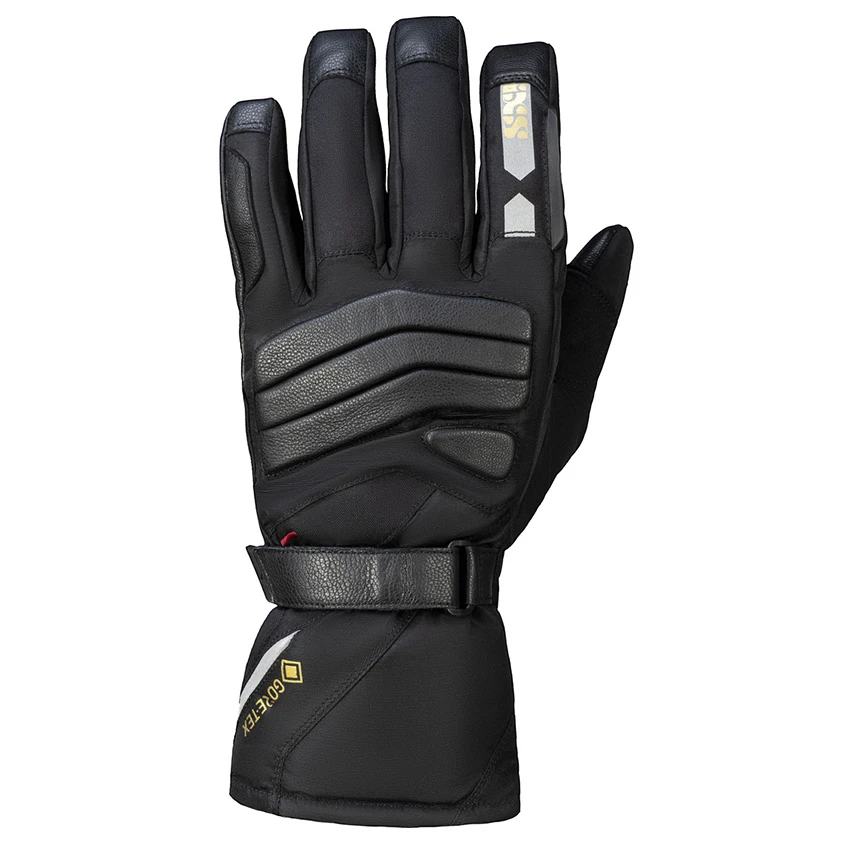 The IXS Sonar GTX 2.0 winter motorcycle glove is made of a mix between textile and goatskin for good abrasion resistance and comfort. This ladies motorcycle glove with long cuff also has a waterproof Gore-tex membrane. A handy squeegee has been added on the index finger for wiping away droplets on your visor. The knuckle padding is made of shock absorbing material. Width-adjustable cuff with Velcro.
