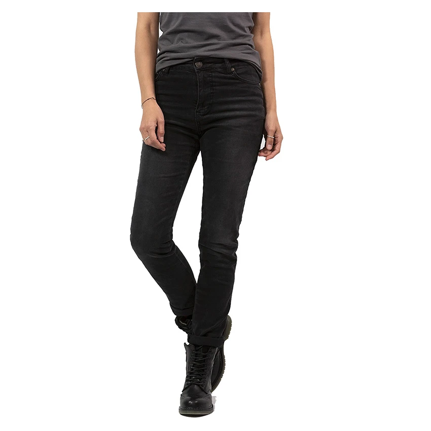 John Doe Betty High waist motorcycle jeans with XTM® fiber not only rock it in the looks department, the technical details give them full AA certification. This is mainly because of the XTM-Fiber® lining as well as knee and hip protectors for protection in any situation. Betty High Jeans XTM® come in a high-waist five-pocket design with outer fabric in stretch denim for supreme comfort.