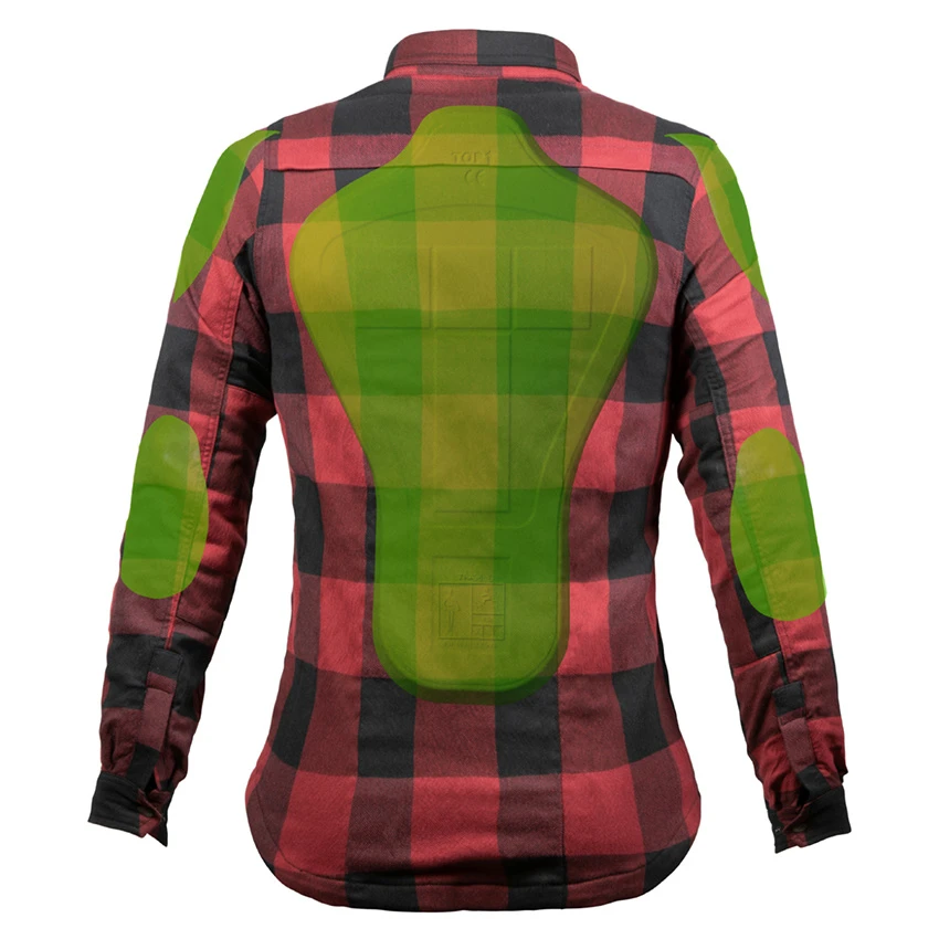 The high functionality and the right protection come from combining flannel cotton twill with a lining made from XTM-Fiber®, and with protectors on the elbows and shoulders (prepared for back protector insert). The Motoshirt feels super light and is very comfortable to wear, even on hot summer days. Motoshirt Women Red/Black has two breast pockets with press studs as well as two inside pockets, one with a zipper and one with Velcro. The cuffs are adjustable to two widths using two press studs. The stretch fabric used gives you an extremely comfortable wearing experience.Â