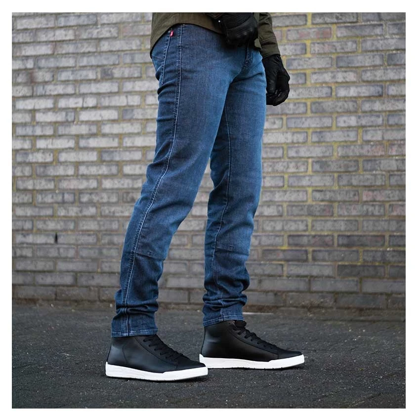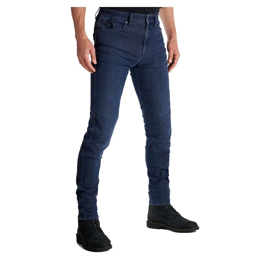Take your next adventure to the next level with Pando Moto’s Robby Cor skinny fit motorcycle jeans. The secret lies in super-stretch Cordura® denim loved by bikers worldwide. Ride with peace of mind thanks to reflective cuffs and high-quality reinforced stitches. Two-position knee protectors pockets protect upon impact.