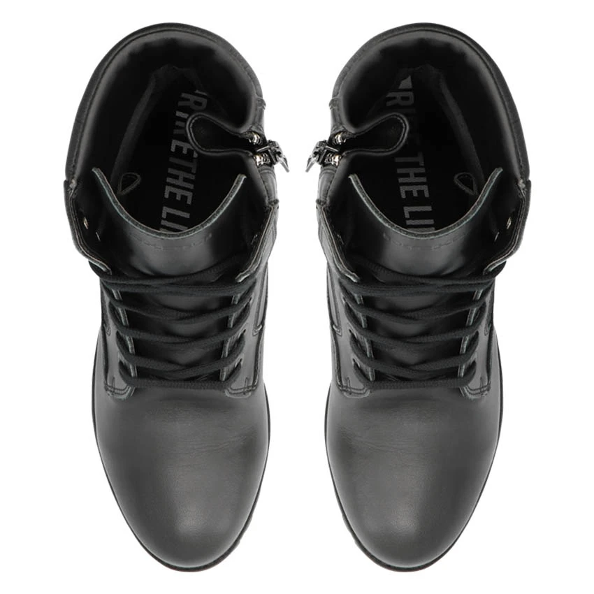 - Lacing closure in combination with a YKK zipper offering easy step-in