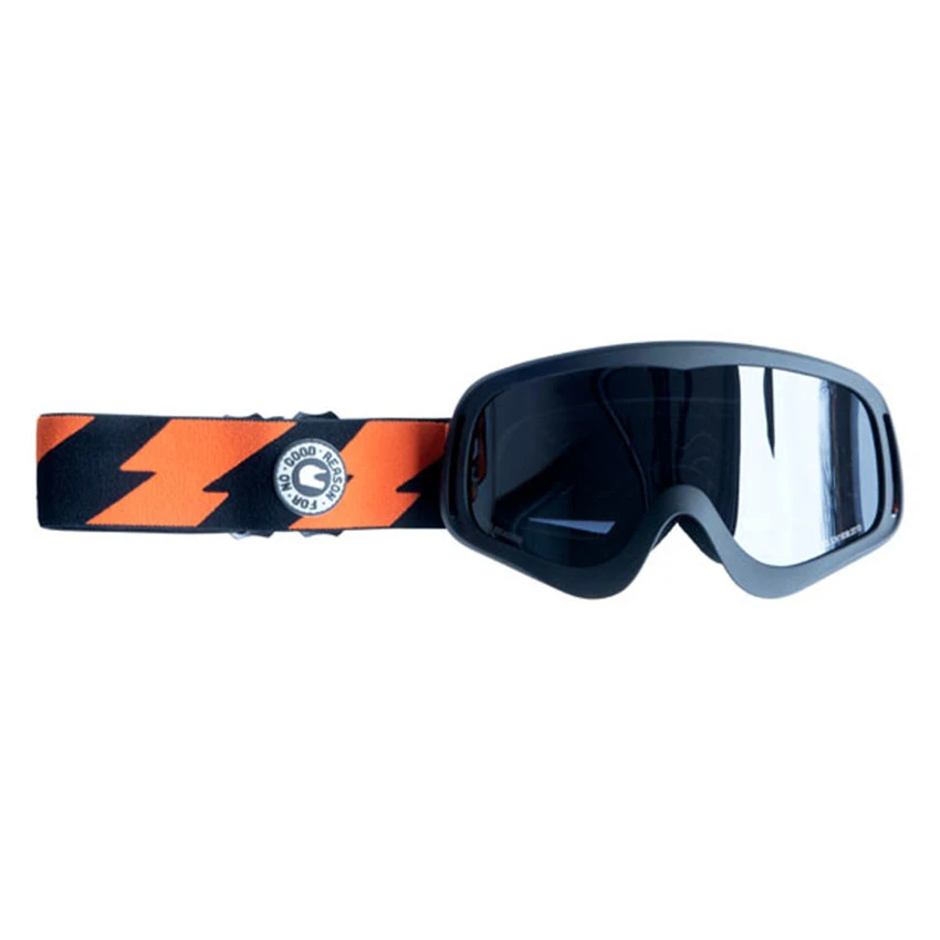 The ROEG® Peruna Grey Bolts and Orange Bolts moto goggles fuses vintage moto design with modern styling and technology resulting in a timeless look with next level performance. The goggle meets the CE EN1938:2010 regulations suitable for motorcycle use.