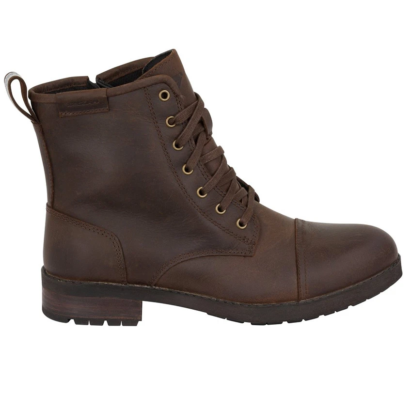 The Segura Edmond vintage brown leather motorcycle shoe is easy to put on thanks to the zippers on the side. Made from a cowhide leather exterior and equipped with a waterproof and breathable membrane, ideal when it rains. The reinforcements around the toes and ankles provide protection at impact.