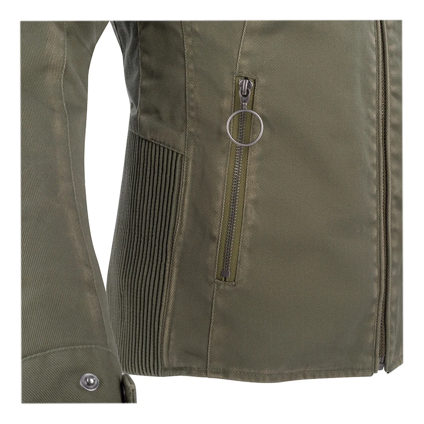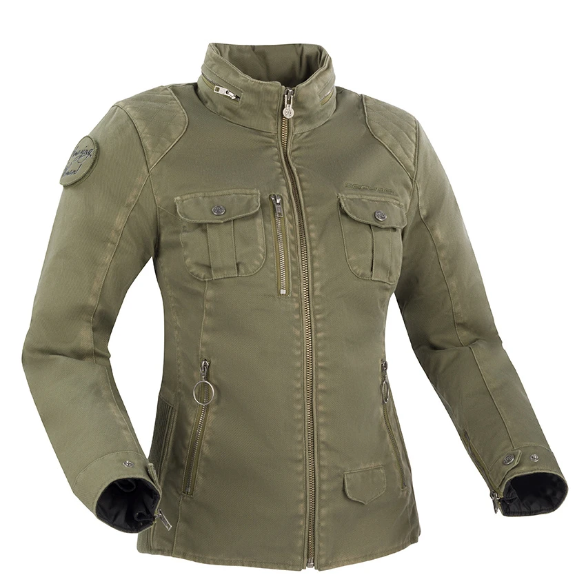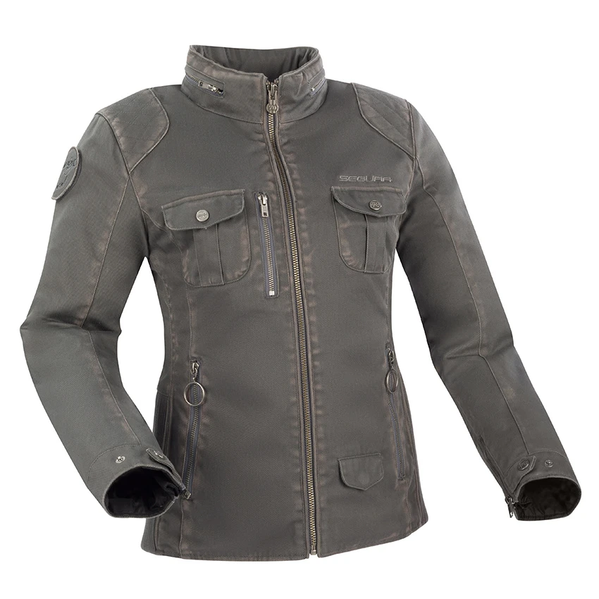 The Segura lady Maya motorcycle jacket has a waterproof membrane and a 90g removable thermo-aluminum lining. The inside consists of a laminated fixed mesh lining. Protection is included on the shoulders and elbows and the jacket is prepared for back protection. The body fit, padded seams and zippers on the cuffs make this ladies motorcycle jacket comfortable and timeless.