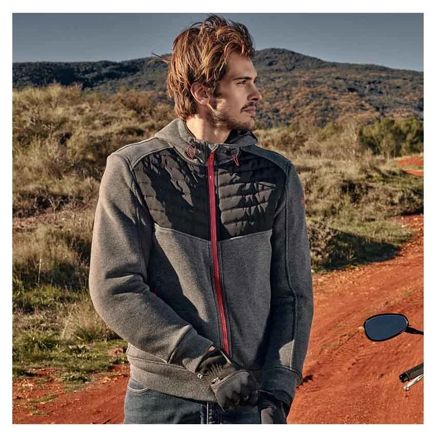 Great jacket for warmer and summer days. The Segura Pulsor is a gerat addition to your urban motorcycle wardrobe. Constructed of cotton, twilltex and Aramid fibers for a good mix of abrasion resistance en comfort. The Pulsor hoodie is comes with level 1 protectors on the elbows and shoulders, and is prepared for a back protector insert.