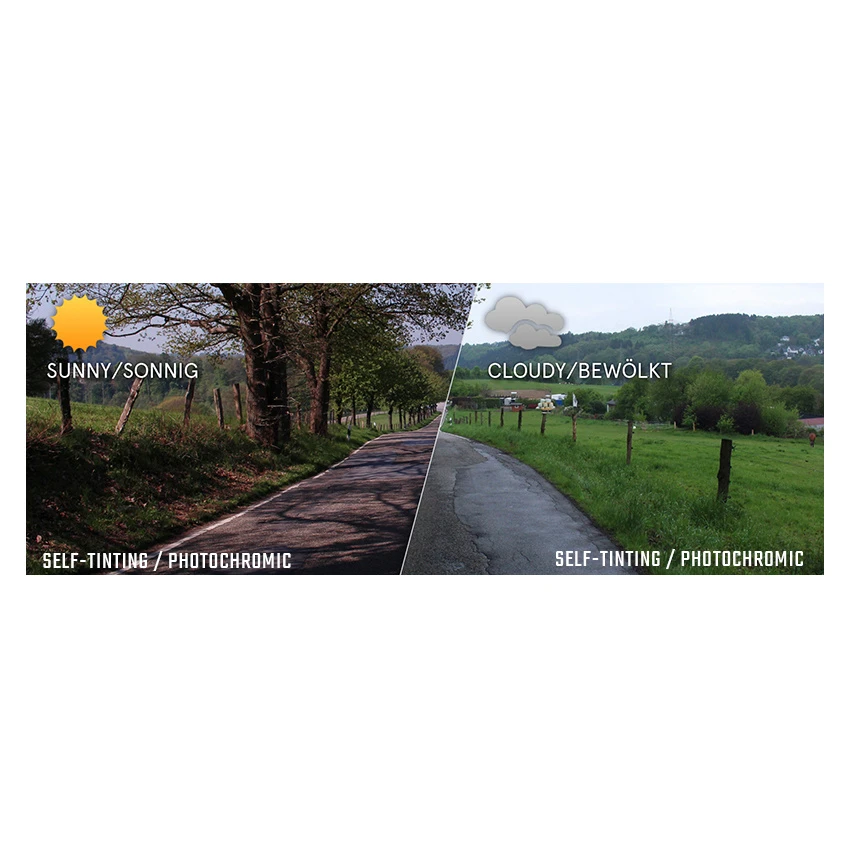 - Optimal visibility in all weather conditions: photochromic depending on the sunlight